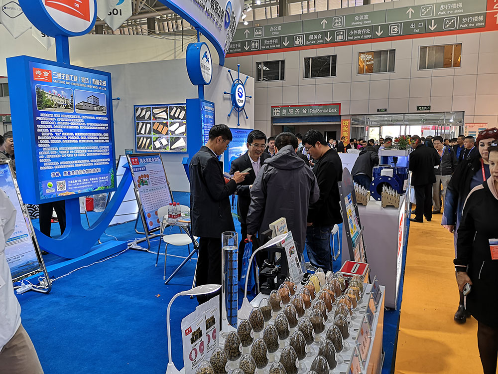 在此次渔博会上,三通生物工程(潍坊)有限公司联合莱州明波水产有限公司共同参展,展位位于渔博会S1馆船头处黄金位置。展会期间,众多养殖户对海童旺食仔稚鱼料及EP料感兴趣并详细询问了产品详情,对此,海童饲料销售团队为客户提出的问题进行了详细解答。其中,李社长、王总、韩总也前往参展并热情接待了来自马来西亚、韩国、日本、新加坡等国家的养殖客户,并为客户简要讲解了国内养殖现状以及海童系列饲料与设备(自动投饵、铜离子)目前的应用情况。